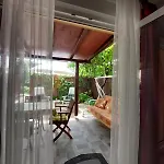 Stället har en terrass med utsikt över trädgården.